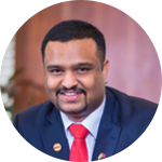 Served as highest-ranking officer for Toastmasters international, South India and Sri Lanka. He was the world's youngest district director for Toastmasters at the age of 28.